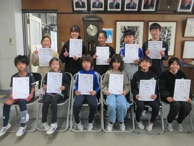 12月22日に実施した「校内持久走記録会」で、各学年男女別1位の児童を表彰しました。