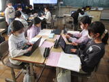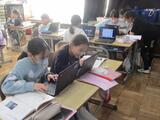 職業調べのまとめとして、グループで、劇やクイズ作りに取り組んでいました。