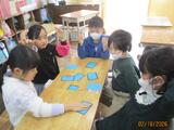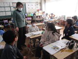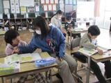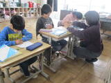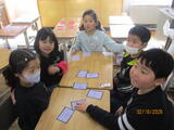 教室の中にある物(本・ノート・机・窓など)について、「What is it ?」を合言葉に、カードゲームを通して、英語での言い方を学んでいました。