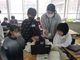 「発電した電気は、どのように蓄えて使うことができるのか?」について、電気を蓄えたコンデンサーに豆電球などをつなぎ、明かりのつく時間調べるながら、グループごとに考えをまとめる作業に取り組んでいました。