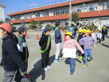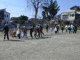 2時間目の休み時間、計画委員会発案の「あいさつ列車」が校庭内を回りました。