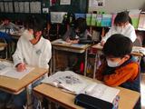 国語では、絵の中の町の様子を説明する文章を書いたり、理科では、物の温まり方に関する問題練習を進めたりするなど、各自の課題に取り組んでいました。