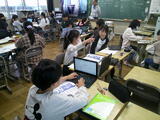6年生がAI型教材「Qubena(キュビナ)」に挑戦していました。Qubena(キュビナ)は、タブレット端末を使って行うドリル学習です。
