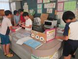 【図書委員会】貸し出しが40冊、80冊に到達した児童に配る「しおり作り」に取り組んでいました。