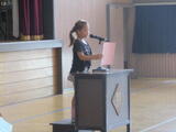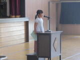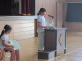 児童代表の言葉では1、3、5年生が1学期に頑張ったことと、2学期に頑張りたいことを発表しました。