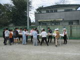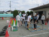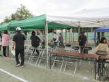 その後はPTA保体委員の皆様にも、カラーコーンの設置や遊具の固定、テント設営などをしていただき、運動会の会場ができ上がってきました。