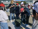 ゴールした後に、ベーゴマをする班もありました。ボランティアの方々に教えていただきながら、子どもたちはコツをつかみ上達してきました。