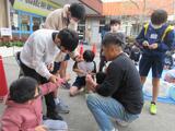 午前中は鋳造所で、子どもたちは石膏の中に錫を流し入れ、午後は学校で、石膏を崩して、取り出した自分の作品を磨き始めました。(写真は午後の様子です。)