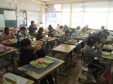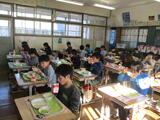 給食の時間には、校長先生から冬休みに向けてお話がありました。子どもたちは給食を食べながらよく聴いていました。