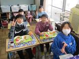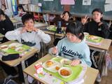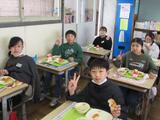 給食風景(6年1組)0306 投稿: 天明小 (17:00) 6年生が小学校で食べられる給食の日も、残りわずか。 給食も楽しい思い出の一つ。大切にしてほしいです。 今日は人気メニューでもあるミニチョコチップパン、スパゲティミートソースなど。 みんな素敵な表情で給食を食べていました。