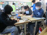 授業風景(5年理科)0311 投稿: 天明小 (16:00) 電磁石の強さを変えるためには、どうしたらよいか? 電流の強さを変えてみたり、コイルの巻き数を変えてみたりして、電磁石に付くクリップの数で確認しようとしていました。